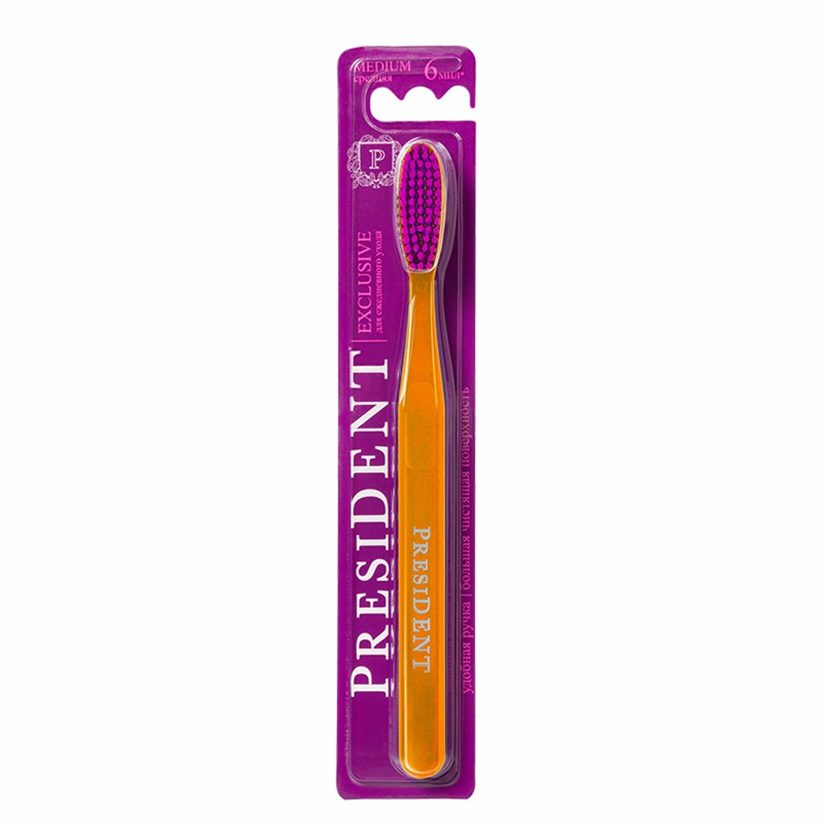 Зубная щетка средняя PRESIDENT Exclusive 6 МИЛ (оранжевый)