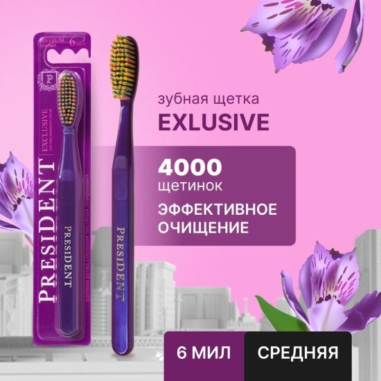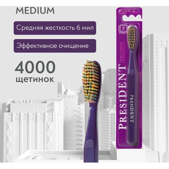 Зубная щетка PRESIDENT Exclusive Medium (6 МИЛ) Средней жесткости