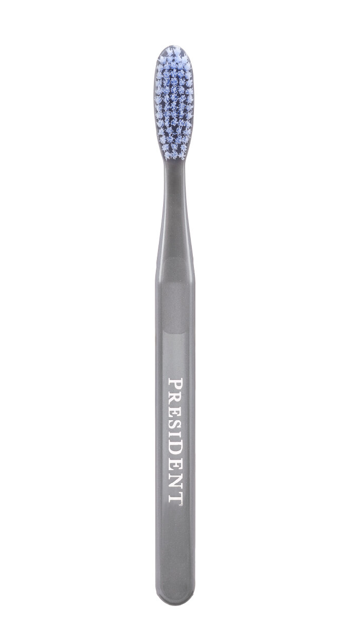 Купить Зубная щетка жесткая PRESIDENT White 8 МИЛ (серебристый/голубой)
