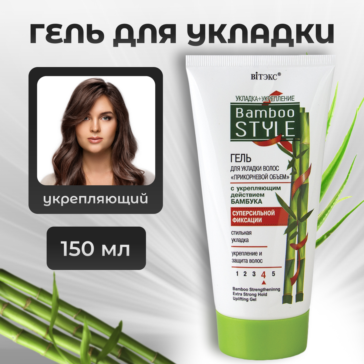 Витэкс Bamboo Style гель для укладки волос Прикорневой объем с укрепляющим действием бамбука, экстрасильная фиксация, 150 мл