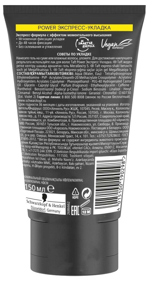 Taft Power гель для укладки Экспресс укладка, экстрасильная фиксация, 150 мл