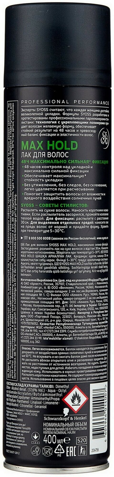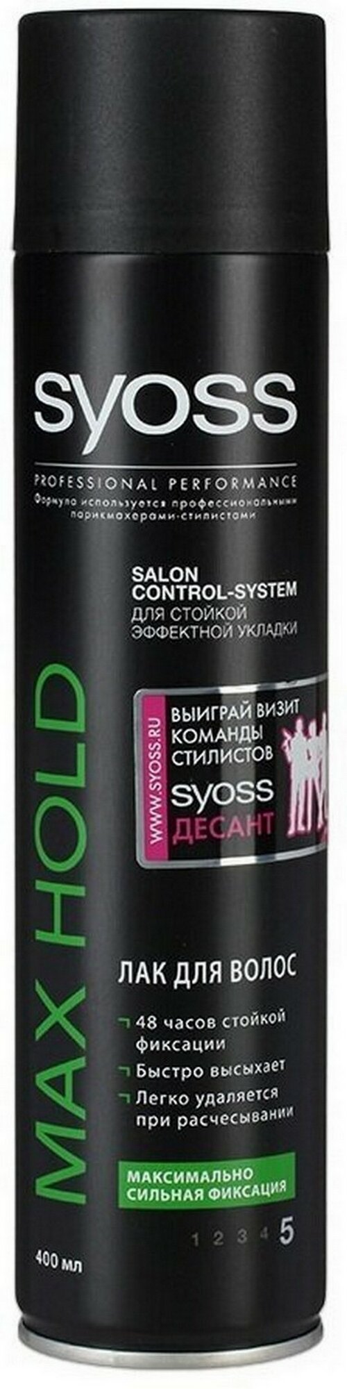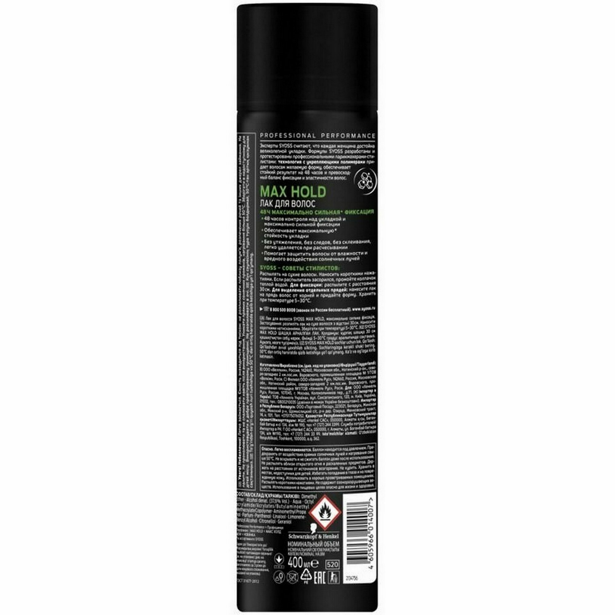 Лак для волос SYOSS Max Hold 48 ч, максимально сильная фиксация, 400 мл