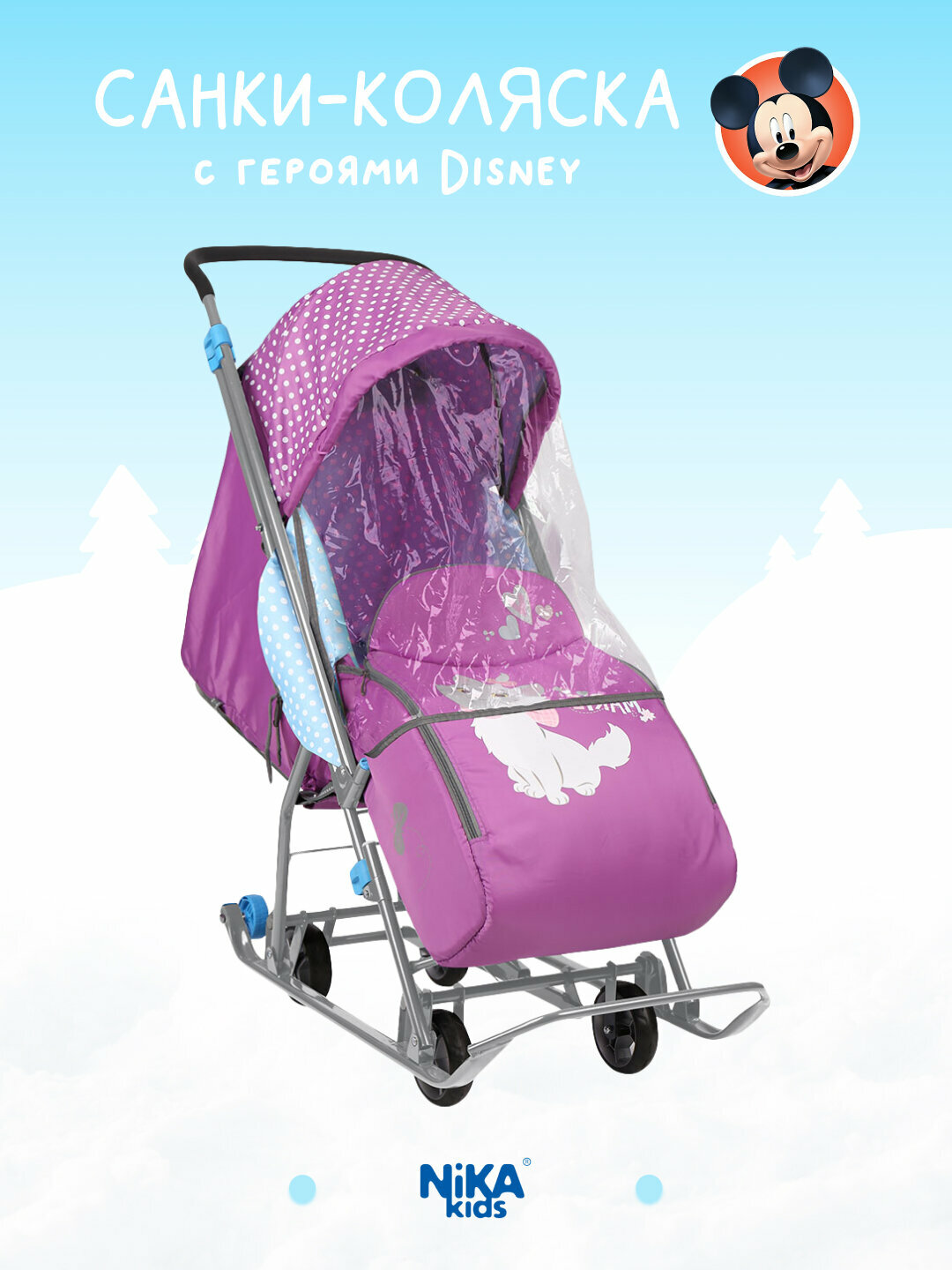 Санки-коляска NIKA Disney Baby 1 (кошечка Мари орхидея)