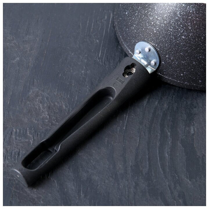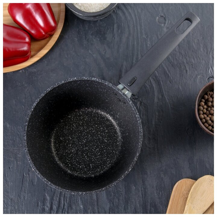 Ковш антипригарный литой 1,5л со съемной ручкой и стеклянной крышкой Темный мрамор TM KUKMARA