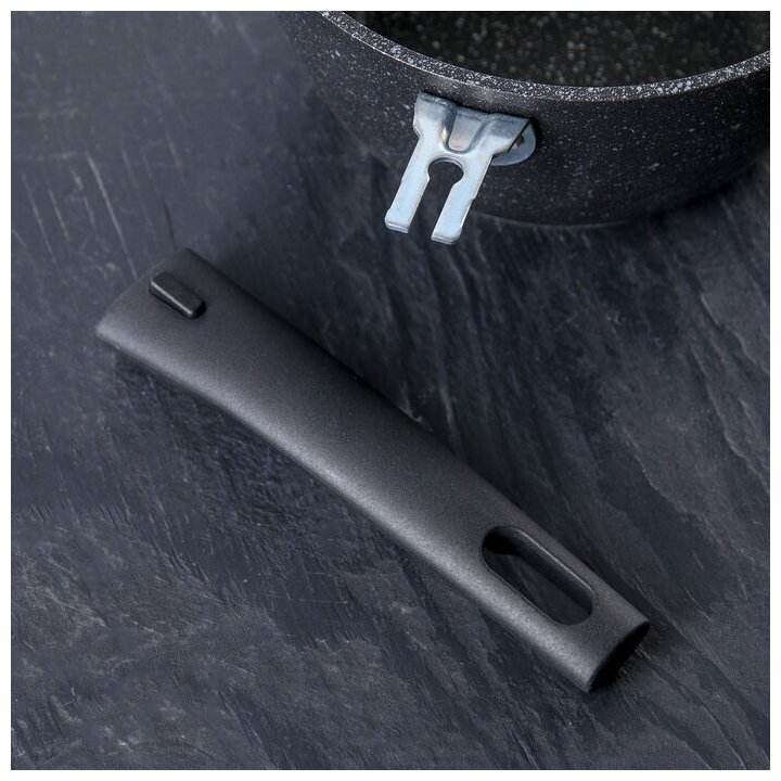 Кастрюля, 1.5 л, съёмная ручка, стеклянная крышка, антипригарное покрытие, цвет светлый мрамор