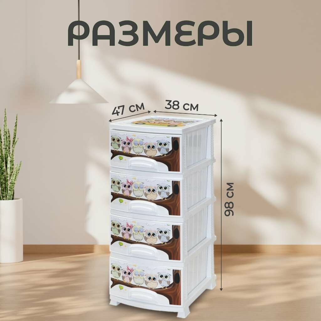 Купить Комод декор 4 ярус Совушки белый В95*Ш38*Г47