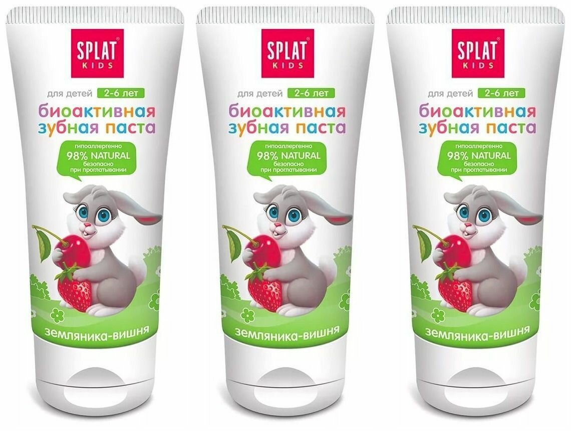 Набор из 3 штук Зубная паста SPLAT Kids 50 мл 2-6 лет Земляника-Вишня детская