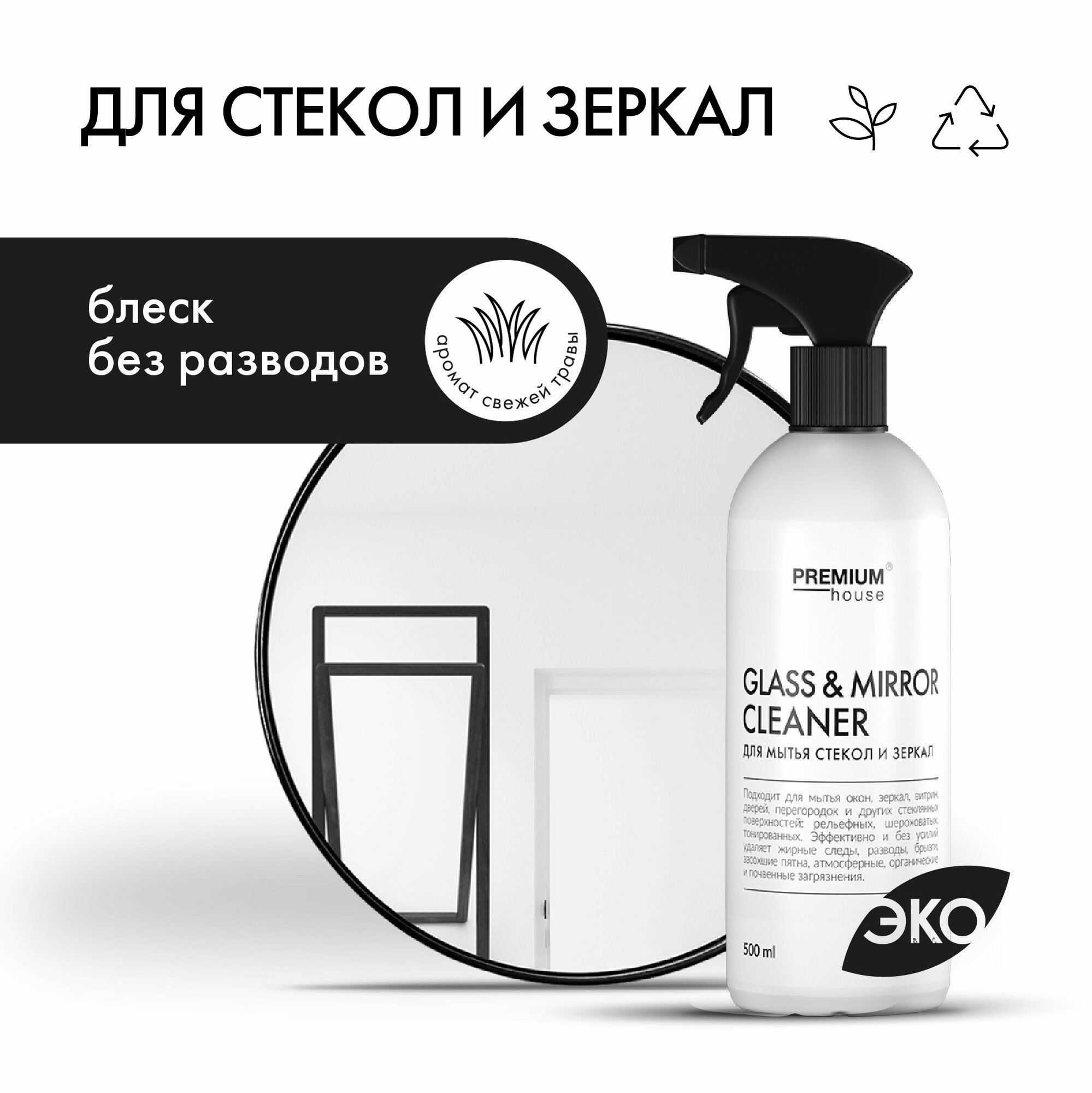 Средство для мытья стекол и зеркал Premium House Glass | Mirror Cleaner (0,5л)