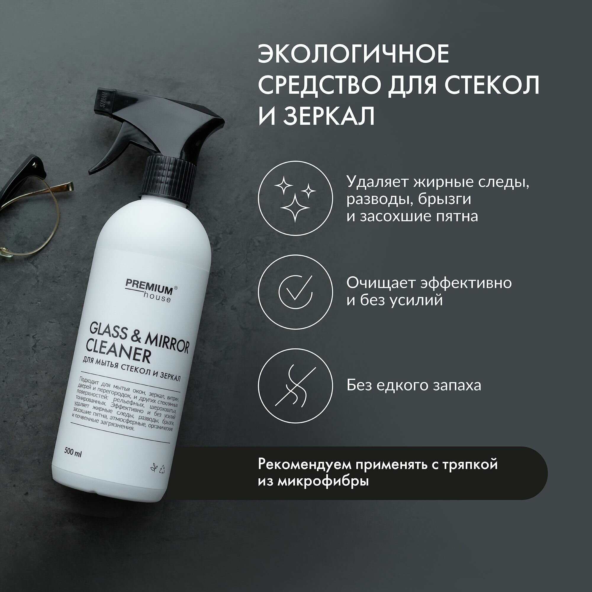 Premium House, Моющее средство для стекол и зеркал, 500 мл