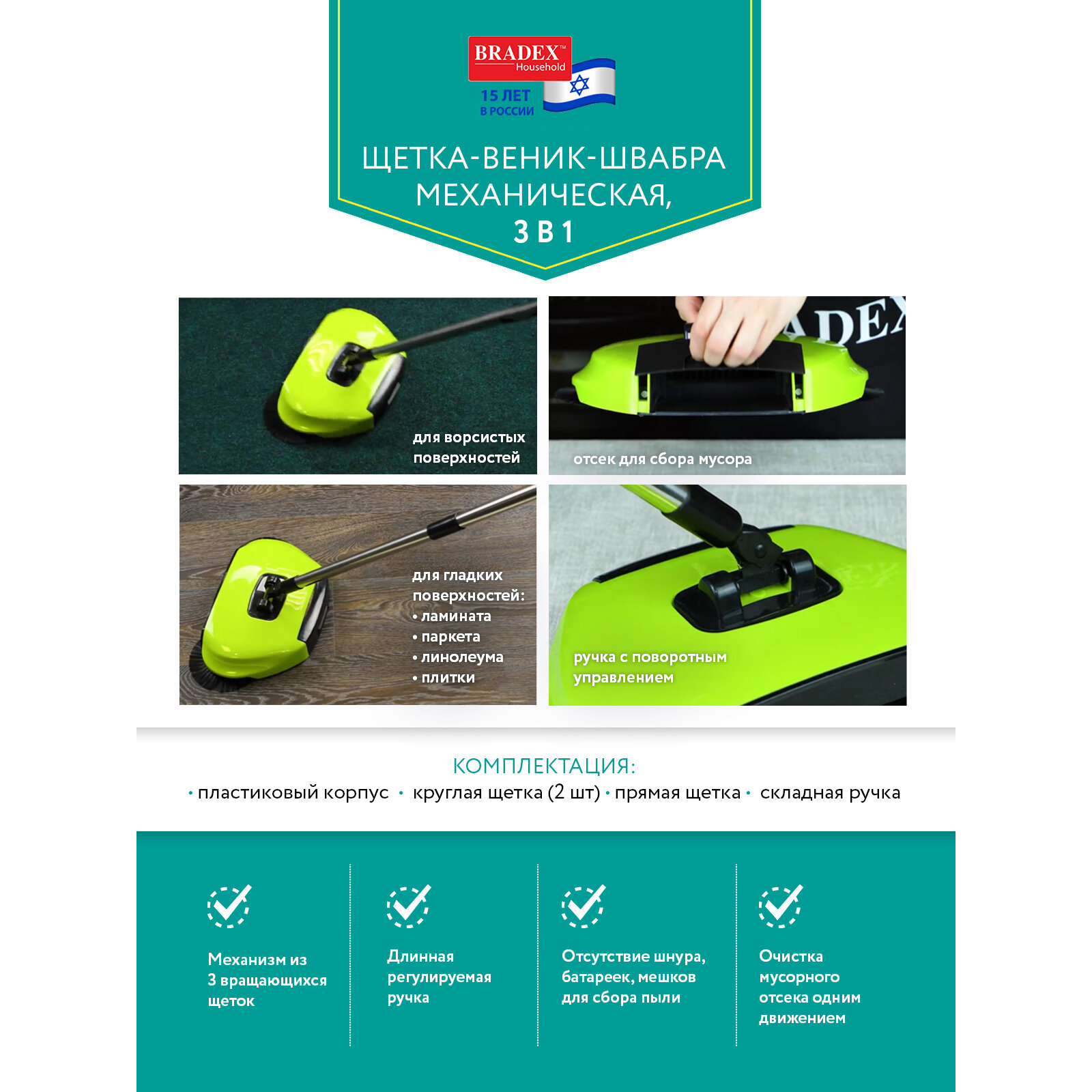 Щётка-веник-швабра механическая 3-в-1 Bradex интересное: