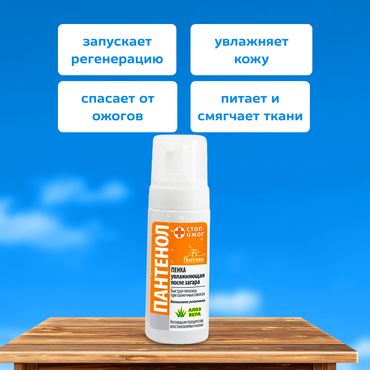 Floresan пенка увлажняющая после загара Пантенол Стоп ожог алоэ вера 150мл.