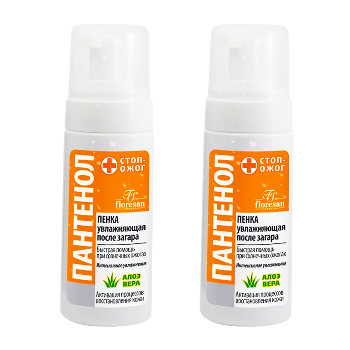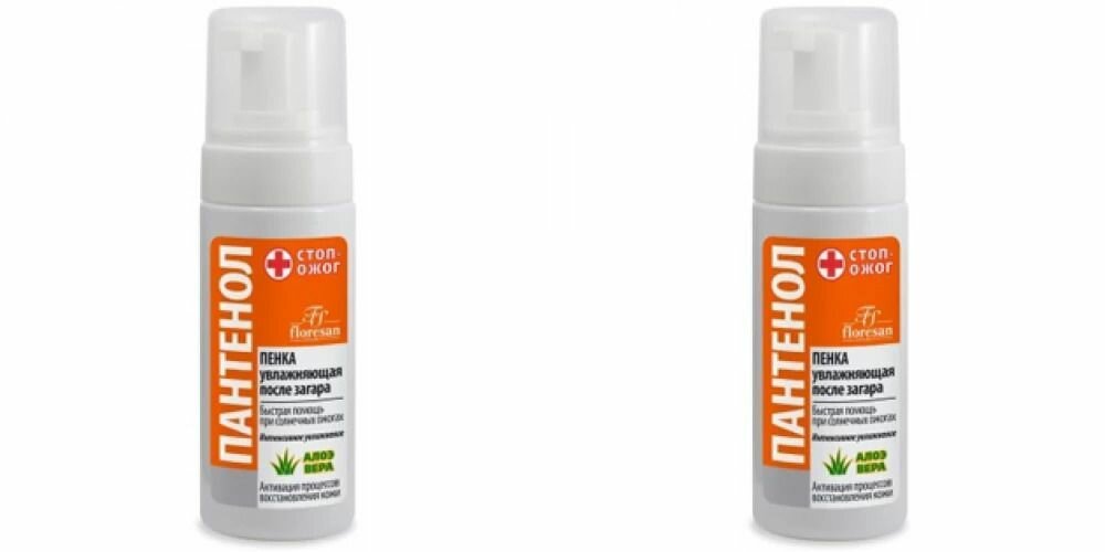 Пенка увлажняющая после загара Floresan Пантенол. Алоэ вера , быстрая помощь при солнечных ожогах, 150 мл (2 шт)