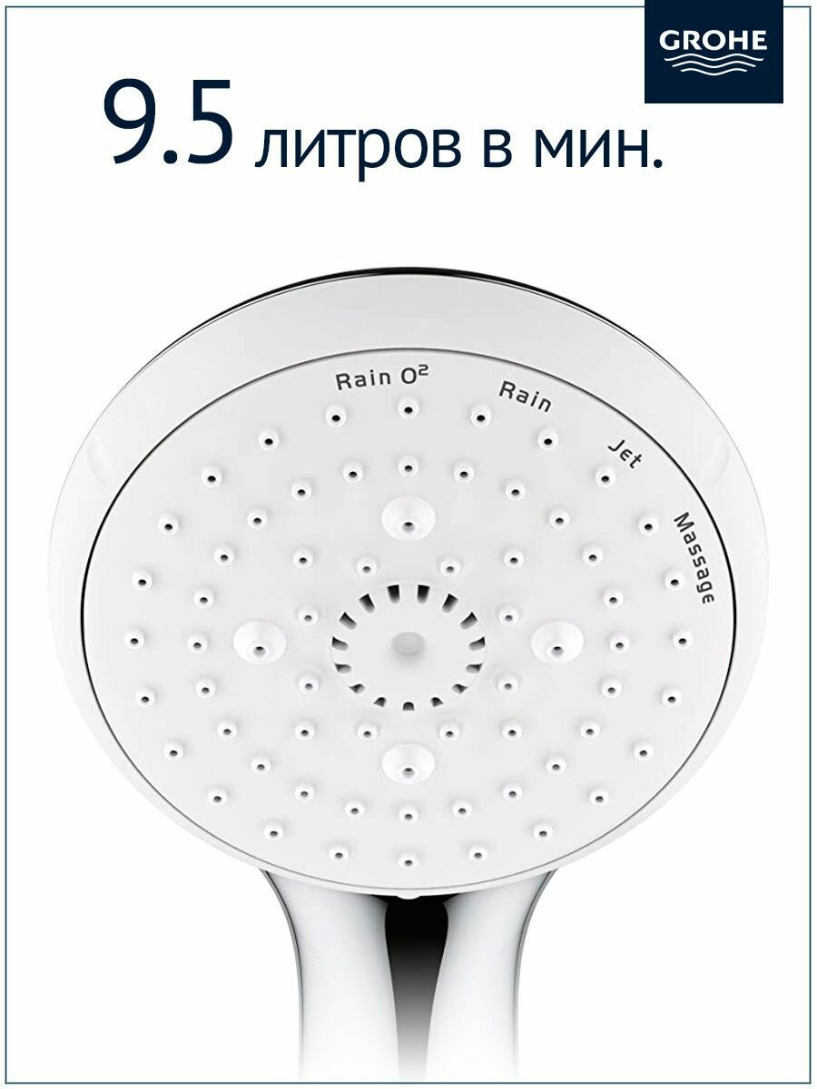 Лейка для душа Grohe Tempesta 100, 4 вида струи, ограничитель расхода воды, хром 28421002