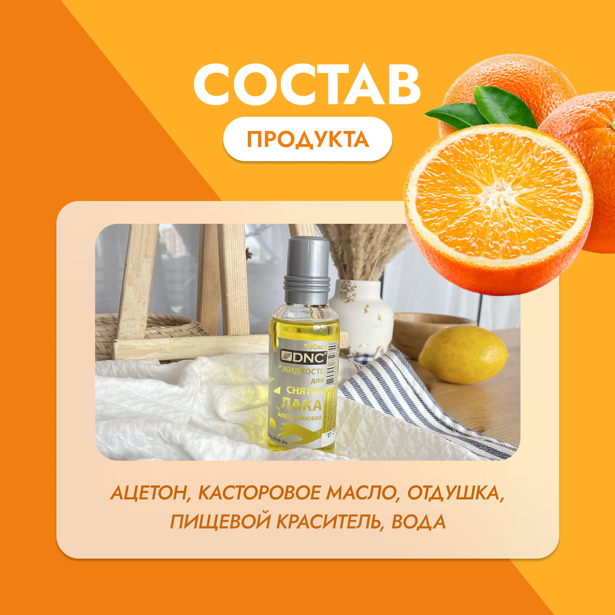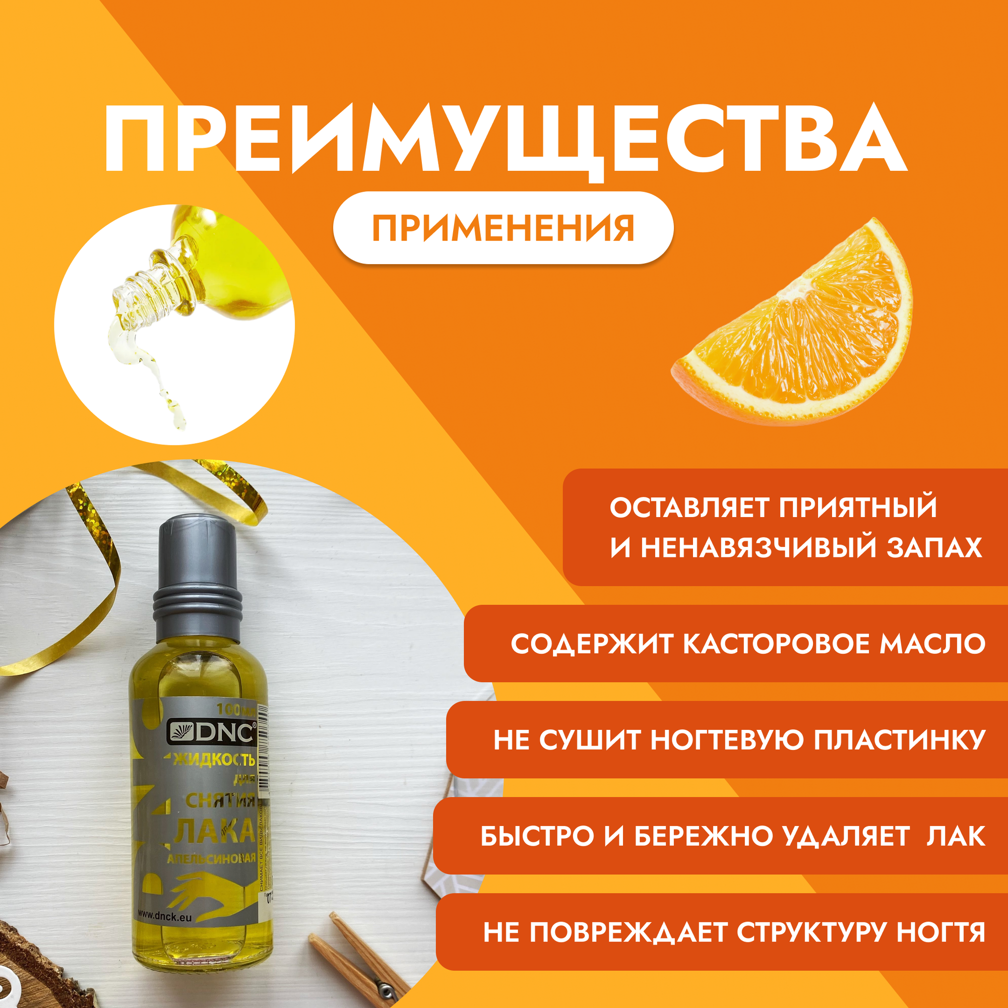 Жидкость для снятия лака DNC апельсиновая 100мл, 100 мл 1 шт