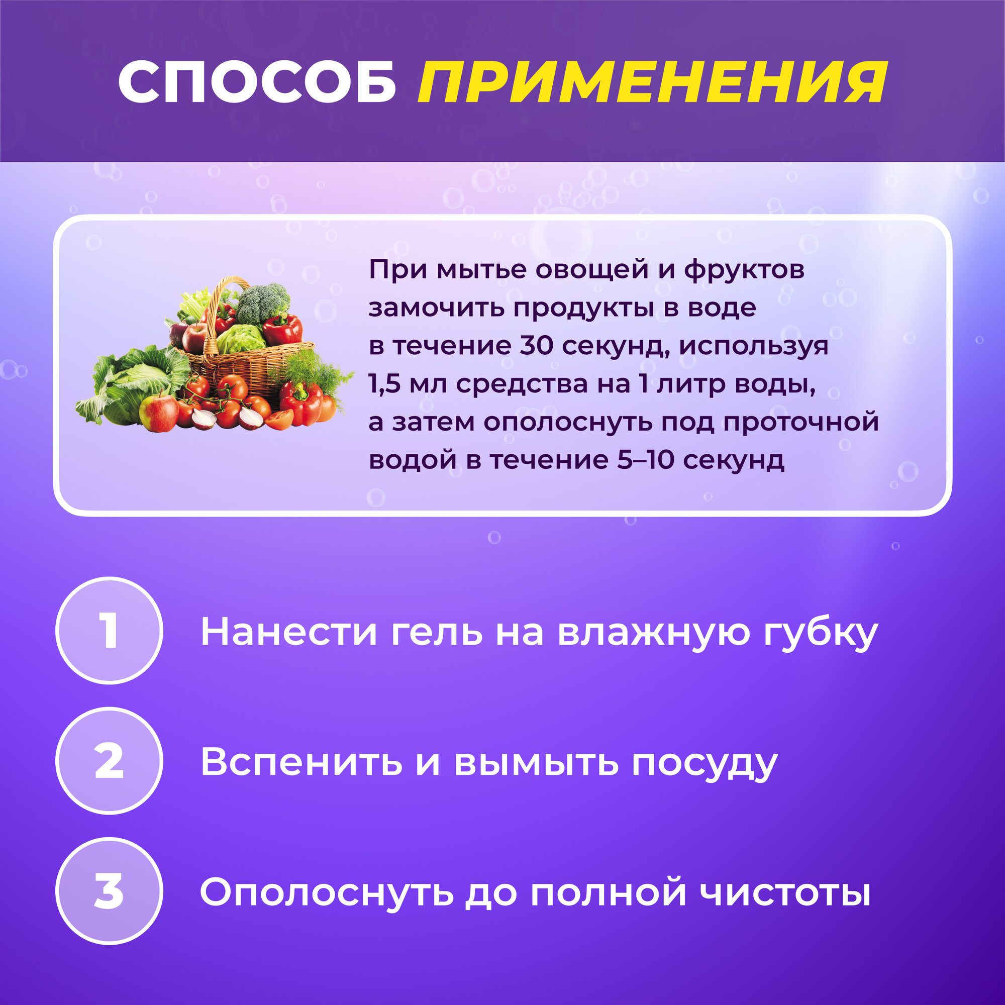 2 отлично моет 3 пена шикарная 4 запах приятный 5 можно мыть фрукты овощи |
