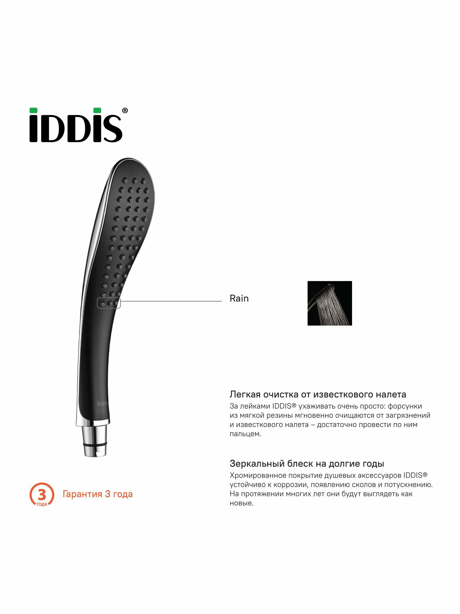 Лейка душевая IDDIS 0211F00I18 1 функция - Rain черный/хром
