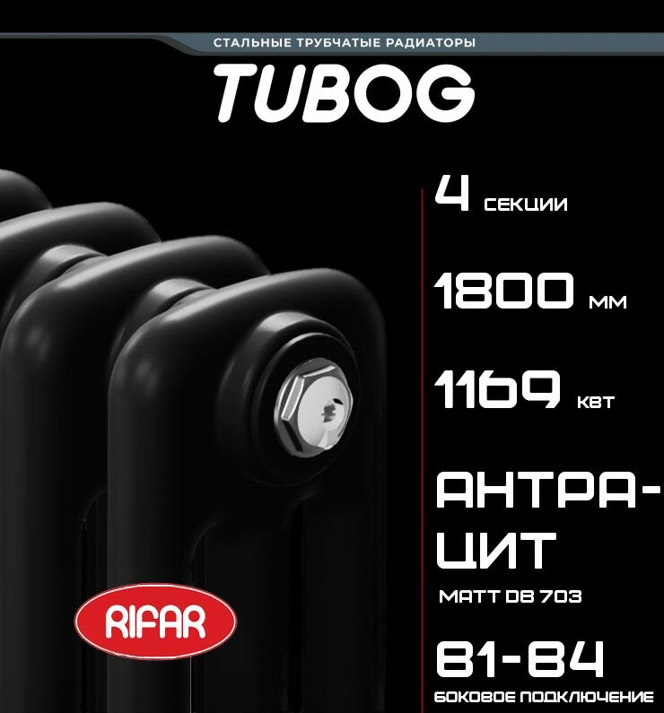 Радиатор отопления Rifar Tubog 2180 / 4 секции, боковое подключение, вертикальный, трубчатый, цвет Титан