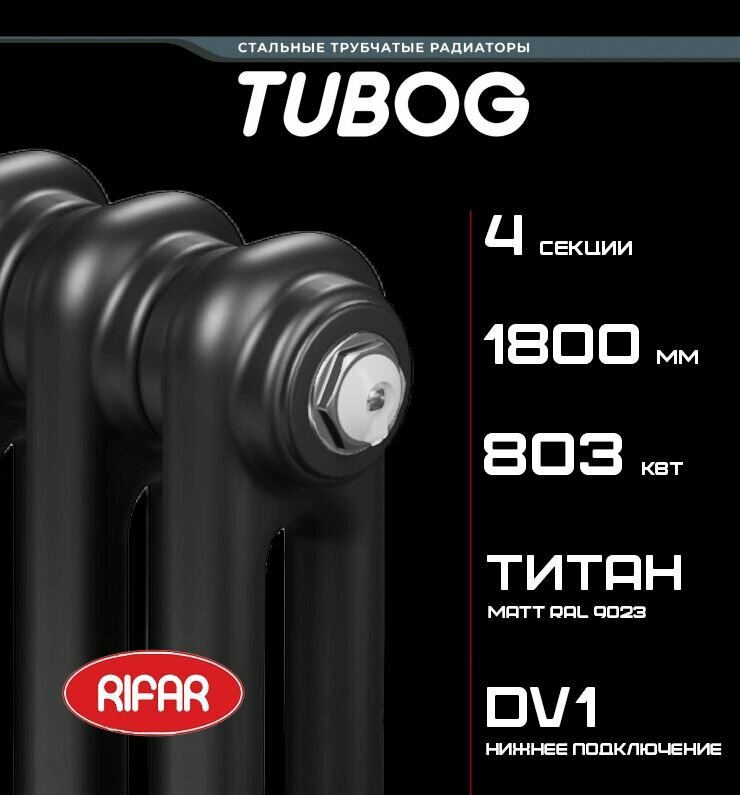 Радиатор отопления Rifar Tubog 2180 / 4 секции, боковое подключение, вертикальный, трубчатый, цвет Титан