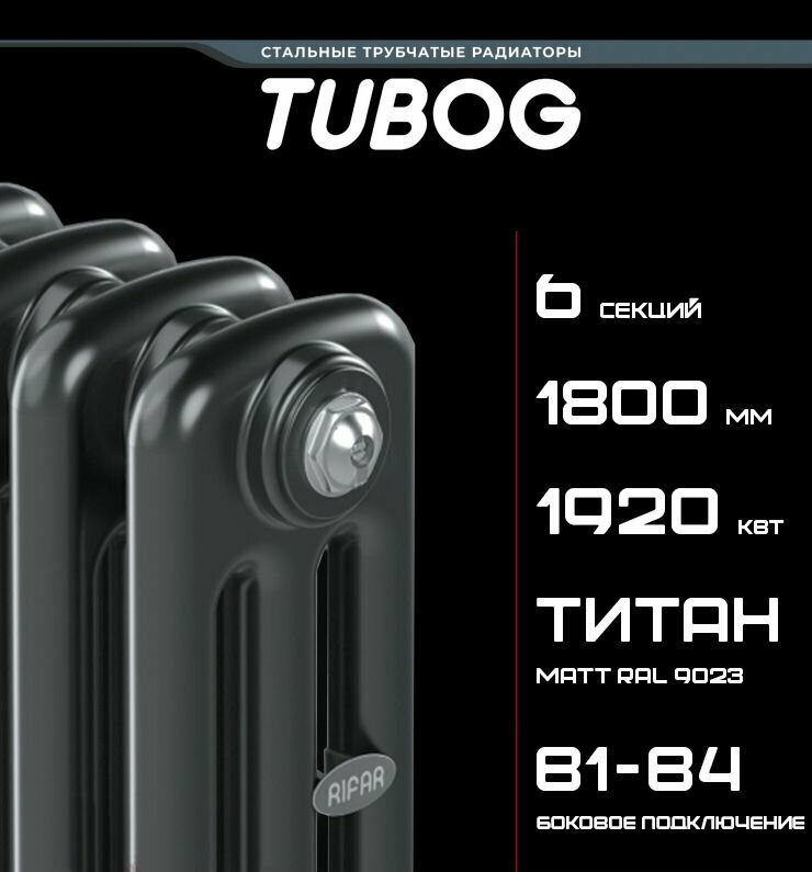 Радиатор отопления Rifar Tubog 2180 / 4 секции, боковое подключение, вертикальный, трубчатый, цвет Титан