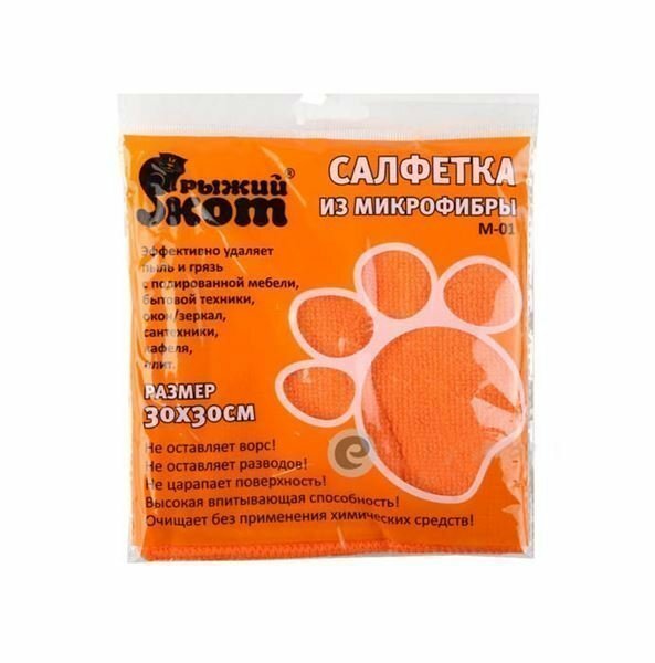Салфетка Рыжий кот М-01 (микрофибра) 30 x 30 см, рыжая