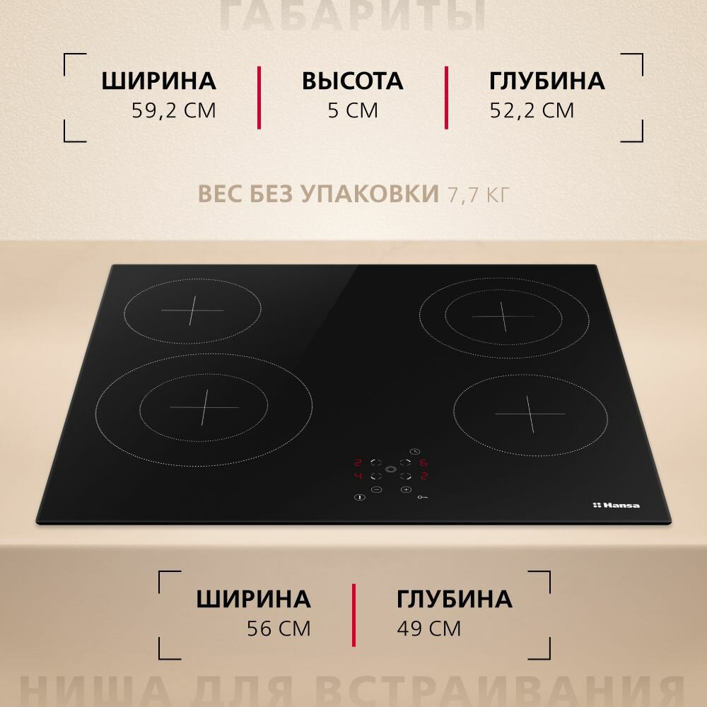 Электрическая варочная панель Hansa BHC96508, встраиваемая, стеклокерамика с сенсорным управлением