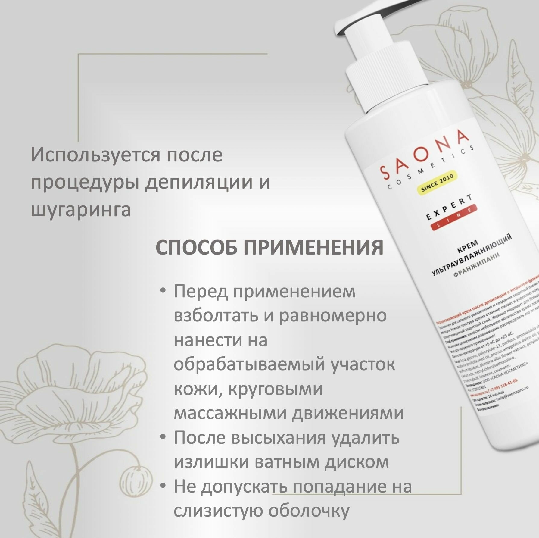 Крем после депиляции с экстрактом франджипани SAONA Cosmetics Expert Line, 200 мл интересное: