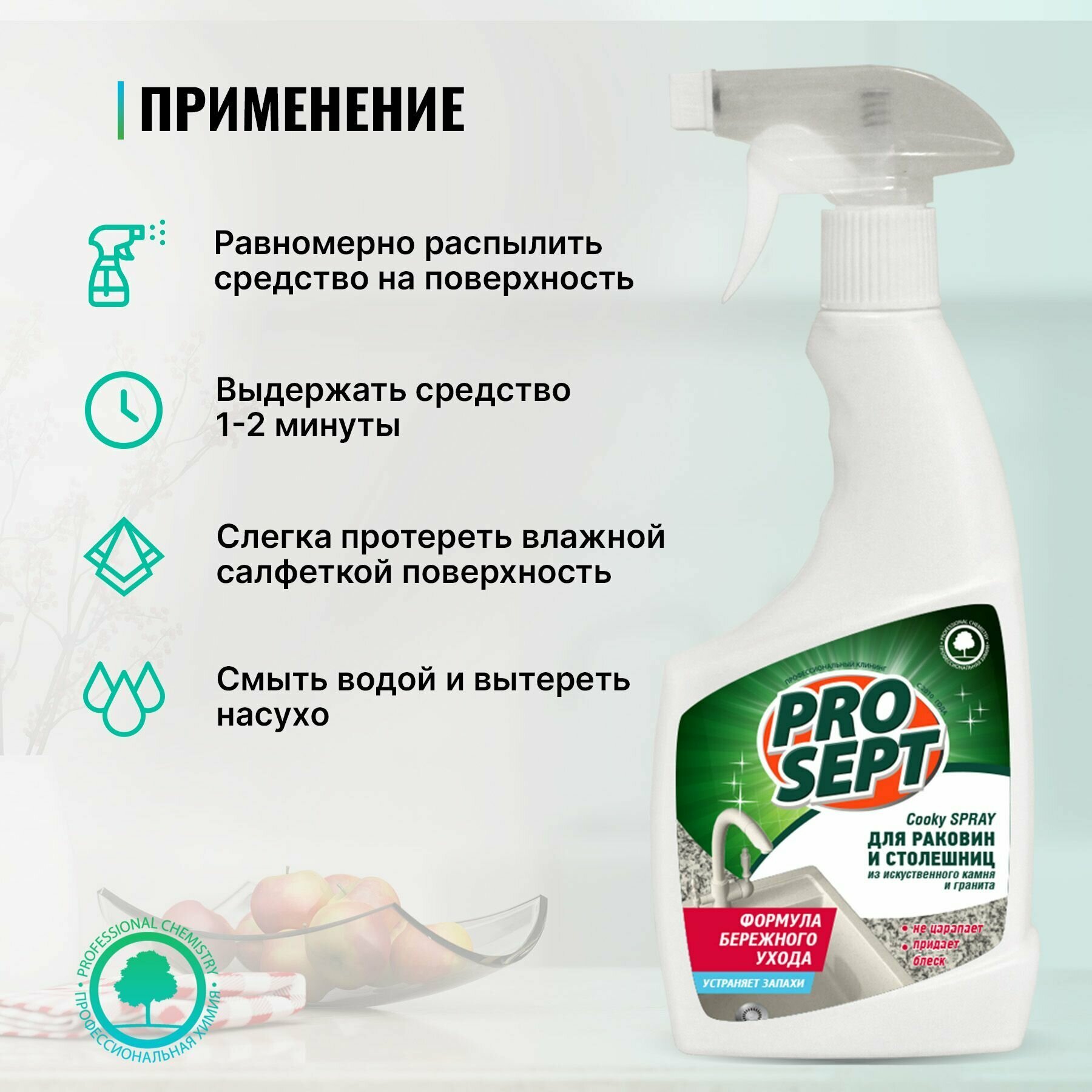 Чистящий спрей Prosept COOKY Spray для столешниц и раковин из искусственного камня и гранита, 500 мл