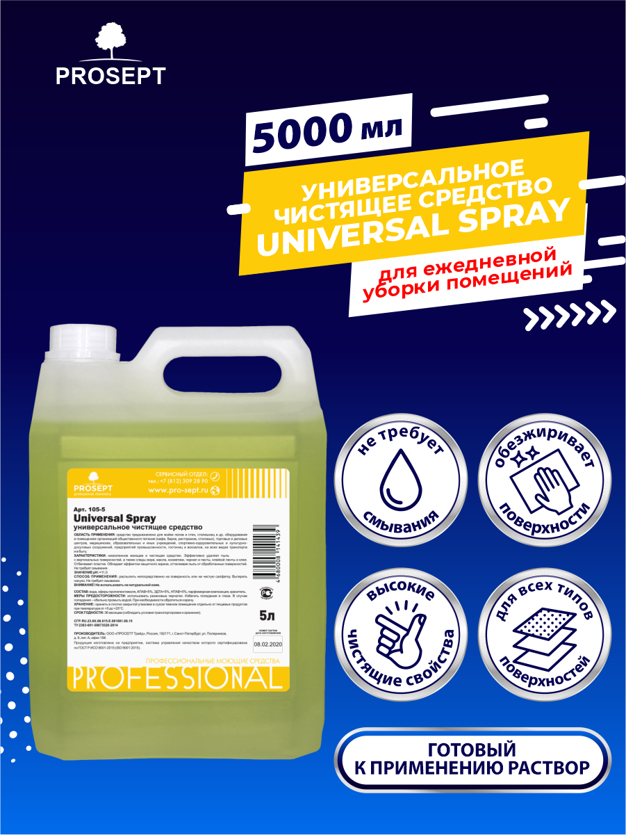 Универсальное моющее и чистящее средство Universal Spray, готовое к применению, 5 л PROSEPT 1284631 .