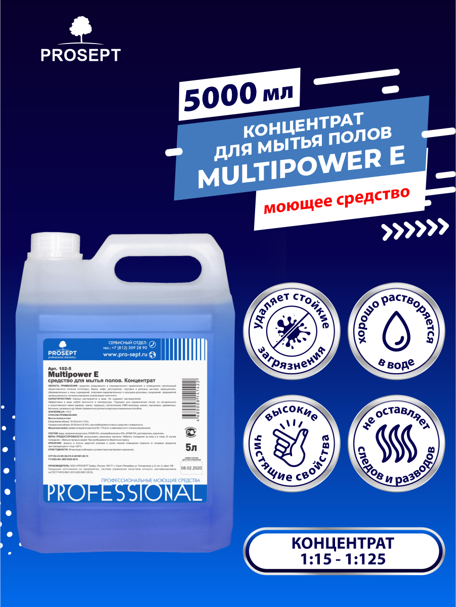 Концентрат Multipower E для мытья полов (5 л) PROSEPT 102-5