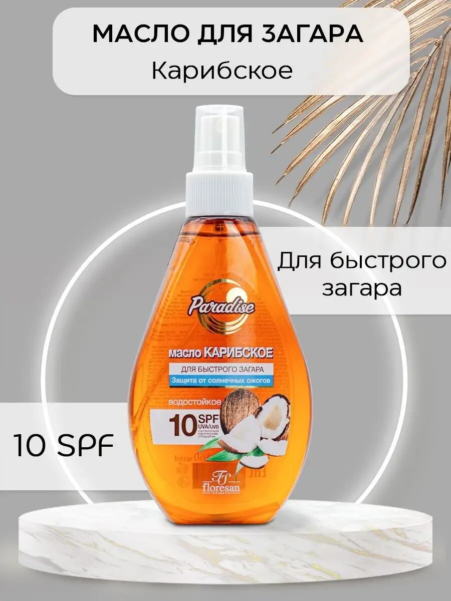 FLORESAN Масло для быстрого загара Карибское водостойкое SPF10, Paradise, 160 мл, FLORESAN