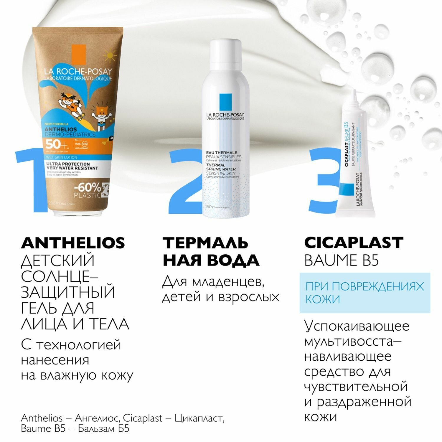 LA ROCHE POSAY Гель для лица и тела с технологией нанесения на влажную кожу SPF 50+ в эко-упаковке Dermo-pediatrics, 200 мл
