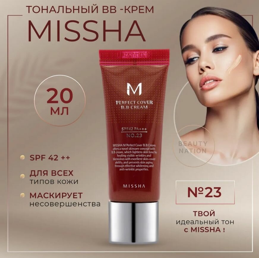 MISSHA M Perfect Cover BB Cream Тональный крем EX SPF 42/PA+++, 20 мл, 23 Natural Beige