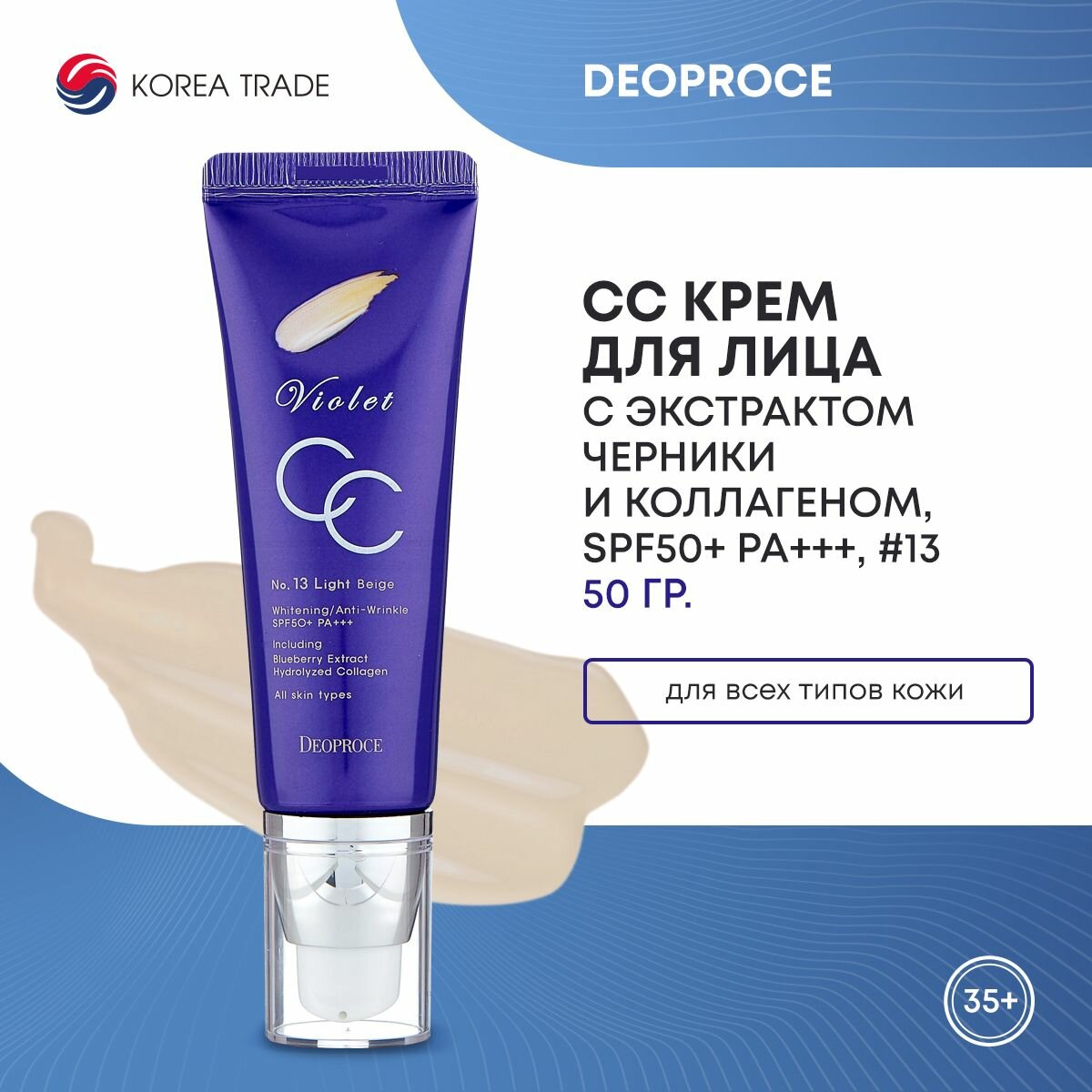 Купить CC крем для лица и тела с экстрактом черники и коллагеном DEOPROCE VIOLET CC CREAM 50g #13