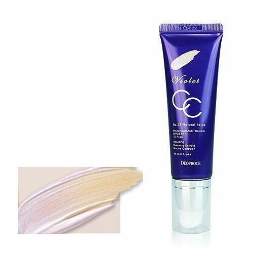 DEOPROCE VIOLET CC CREAM #21 Антивозрастной СС крем с экстрактом черники и коллагеном
