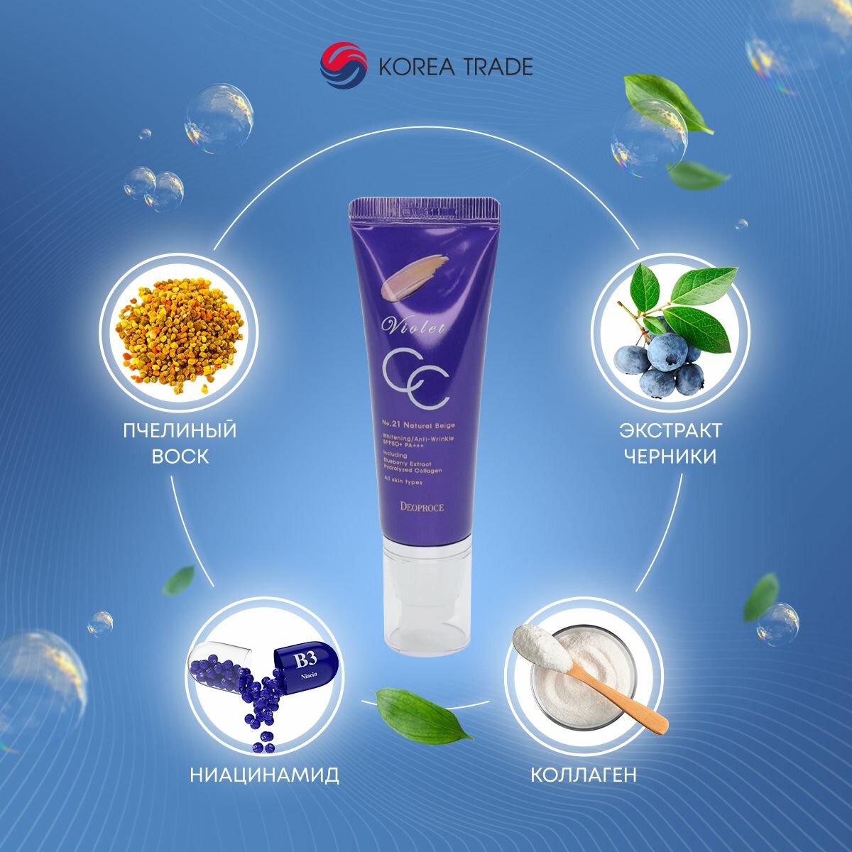 Крем сс Deoproce Violet Cc Cream Spf50+Pa+++ (21 Натуральный бежевый), 50 г
