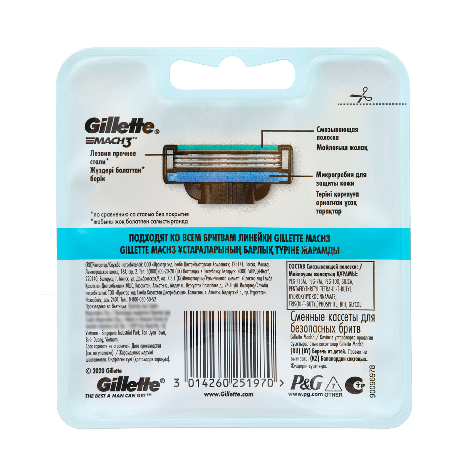 GILLETTE Mach 3 Сменные кассеты для бритья с 3 лезвиями, мужские, 4 шт
