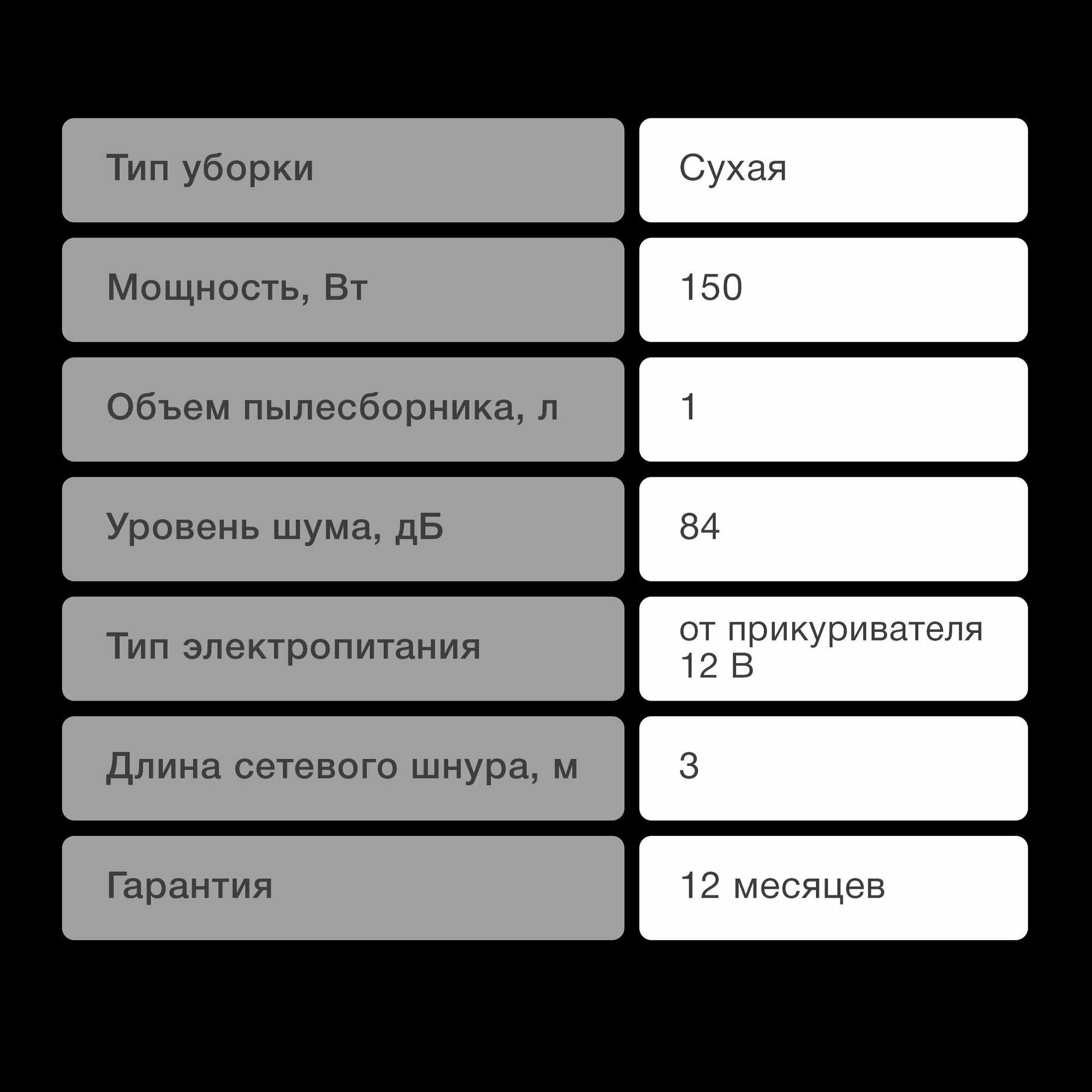 | Плюсы: | Большой пылесборник, длинный кабель и работа от прикуривателя, 150 Вт мощности, общее качество. |