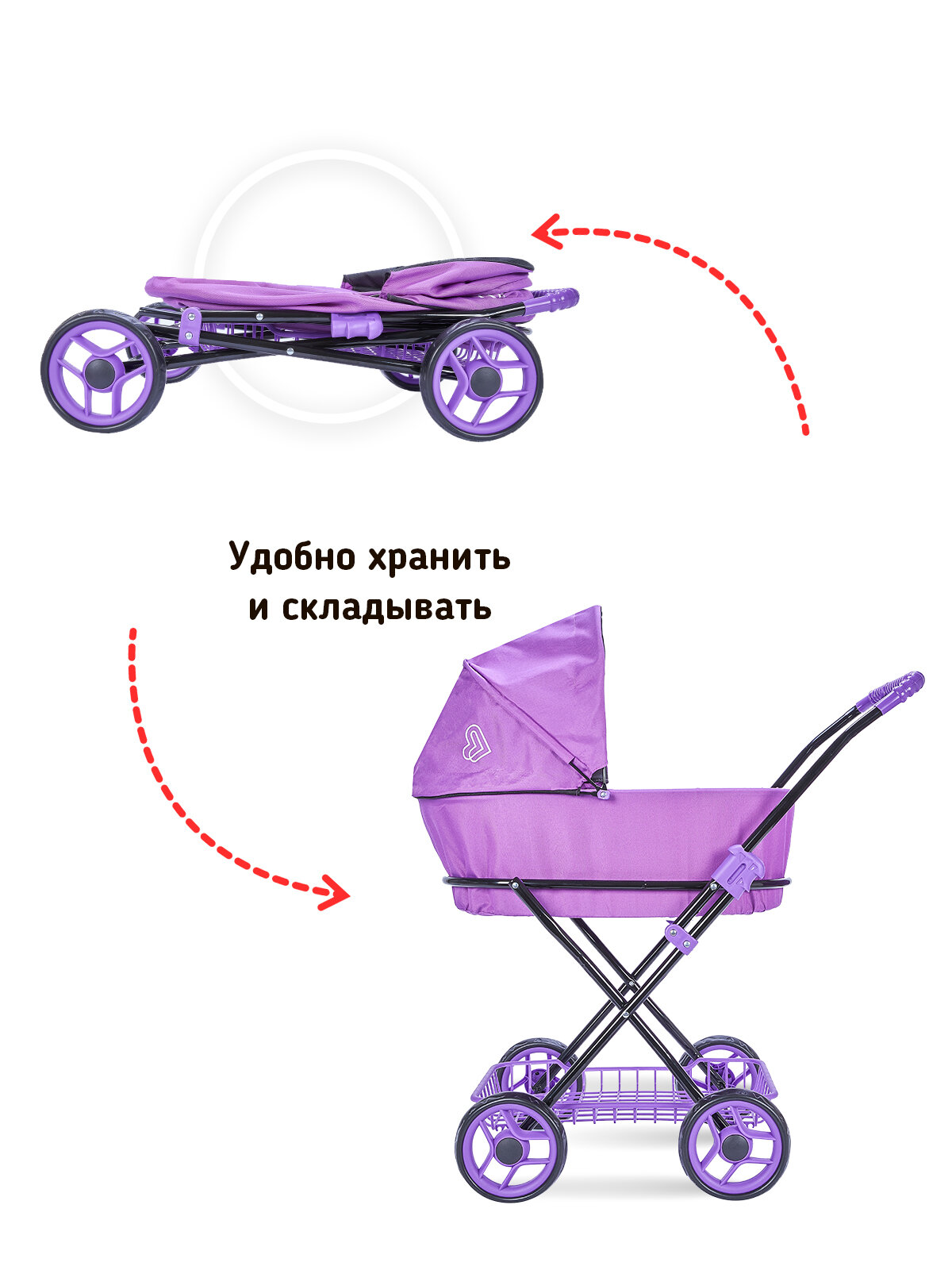 Коляска для кукол - классическая, с капюшоном и сумкой BUGGY BOOM 8019-M2010/СТ