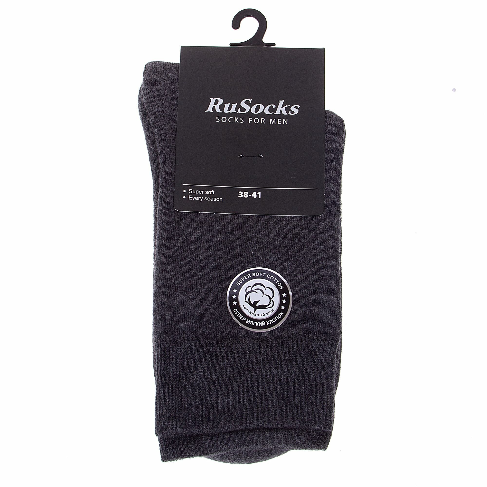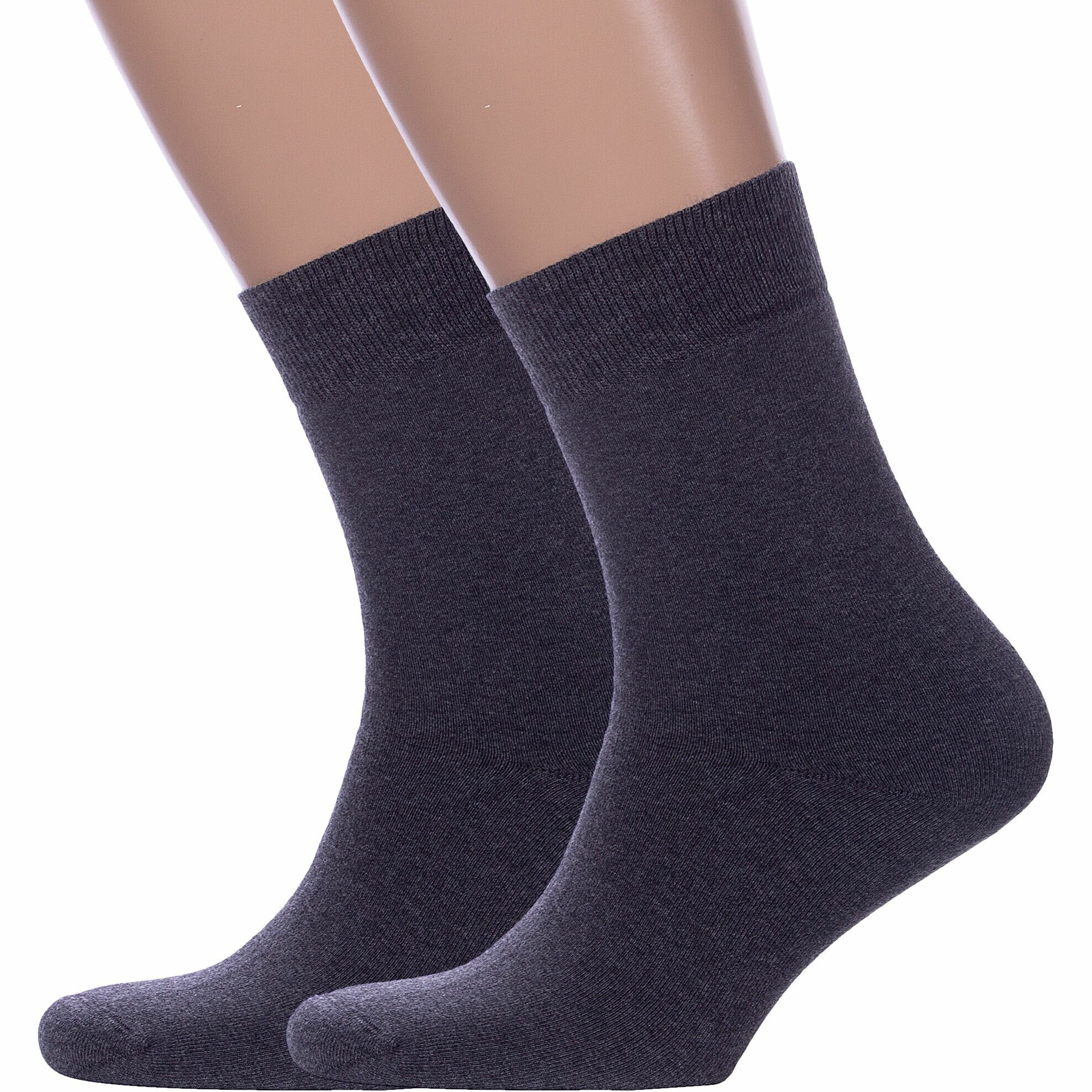 Купить 2-М3-33066 Комплект из 2 пар мужских махровых носков RuSocks (Орудьевский трикотаж) темно-серые однотонные классические высокие средние длинные хлопок хб хлопковые теплые зимние русокс набор упаковка
