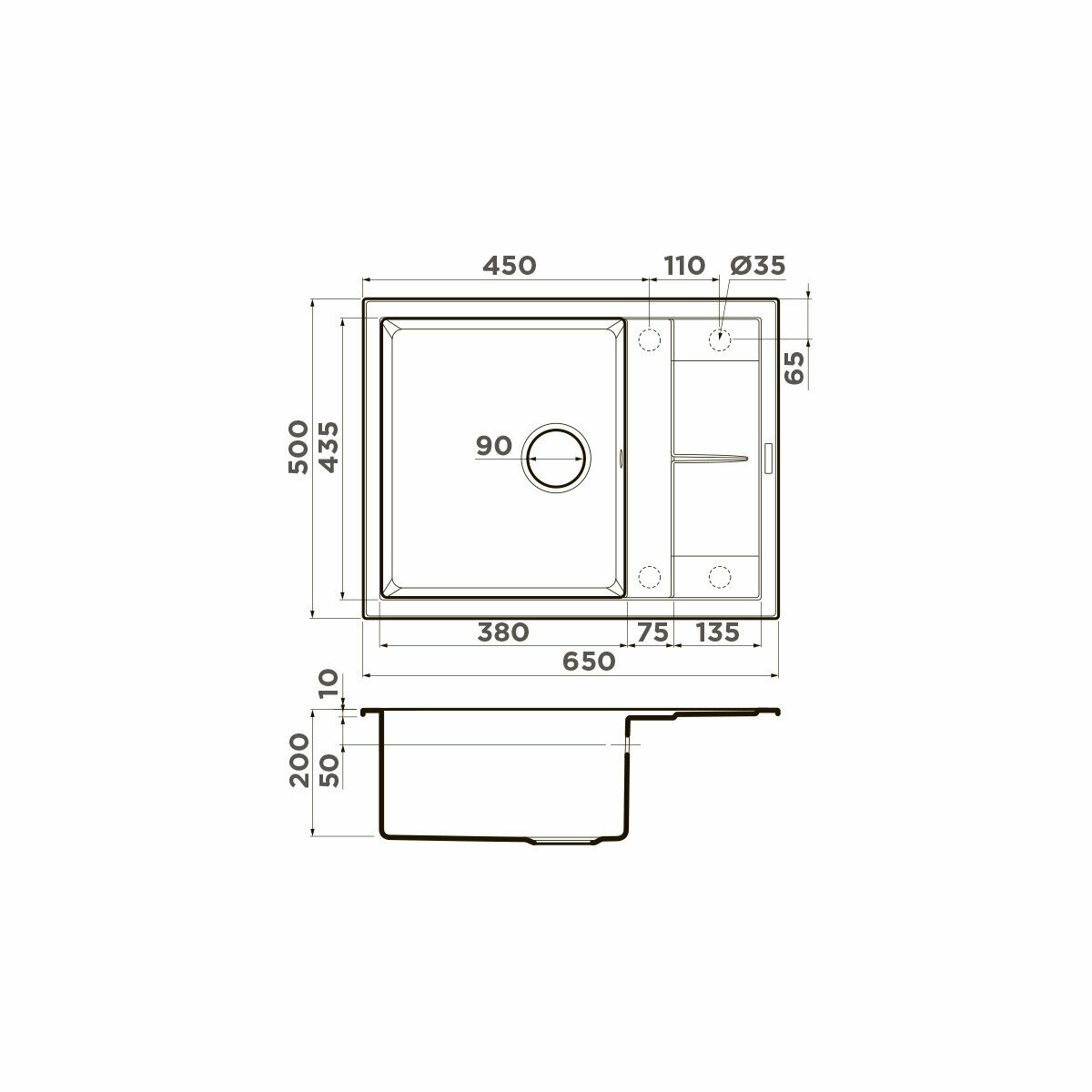 Кухонная мойка с крылом OMOIKIRI Sumi 65-BL, искусственный гранит/черный