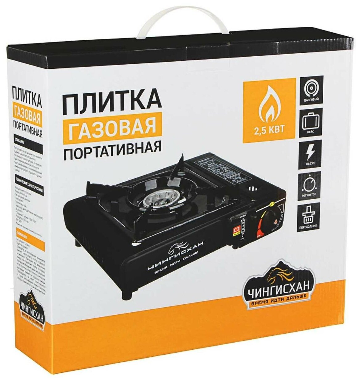 Чингисхан Плитка газовая к бал. с цанговым захватом портативная с переходник, в кейсе, 34х26х9см 333