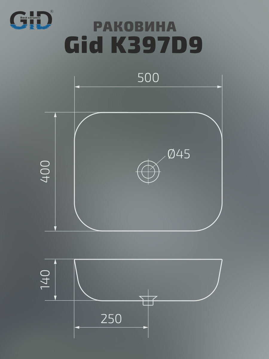 Накладная раковина 50x40х14 см, Gid, K397D9
