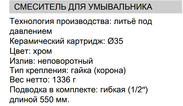 Смеситель для умывальника 35к Glauf NUD1-A146 п/гайку