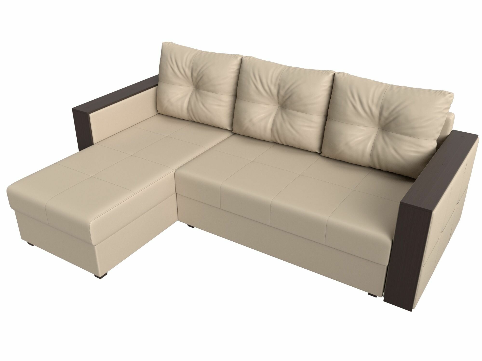 Угловой диван Валенсия Лайт левый угол, Экокожа бежевая