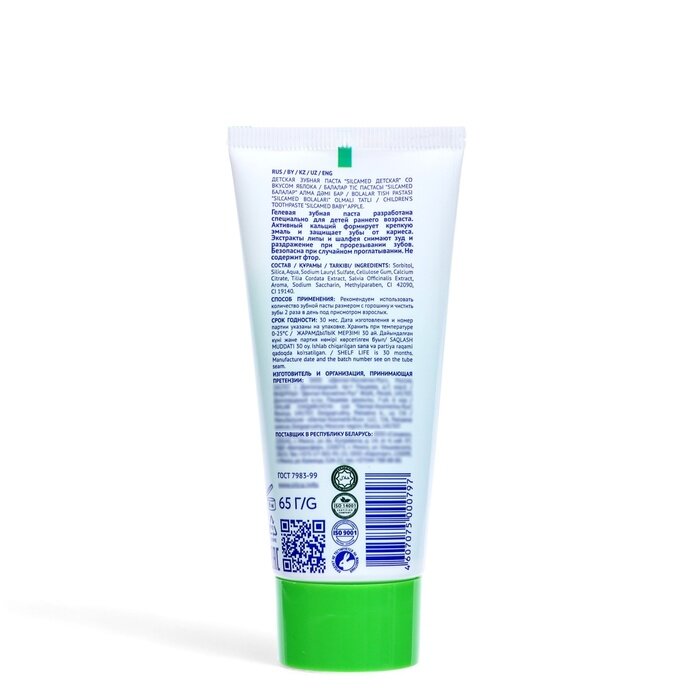 Детская зубная паста SILCAMED со вкусом Яблока, 65 г