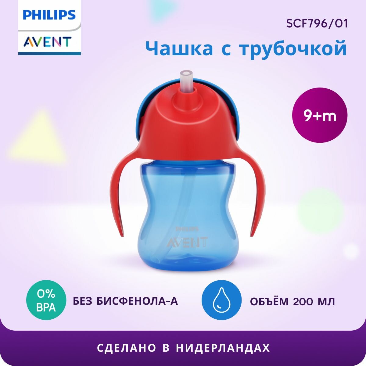 Чашка-поильник с трубочкой Philips AVENT SCF796/01, 200 мл, 9 месяцев