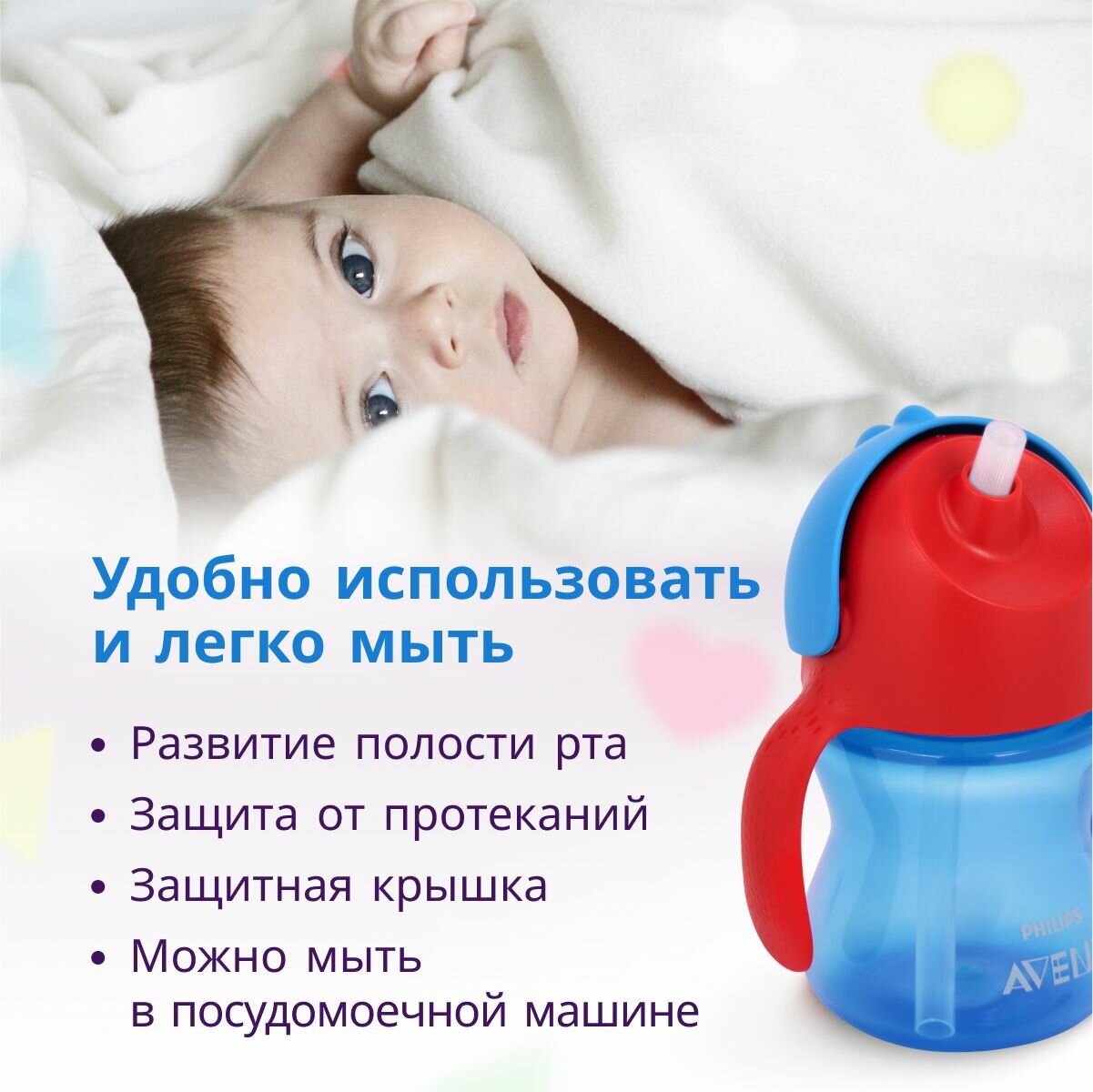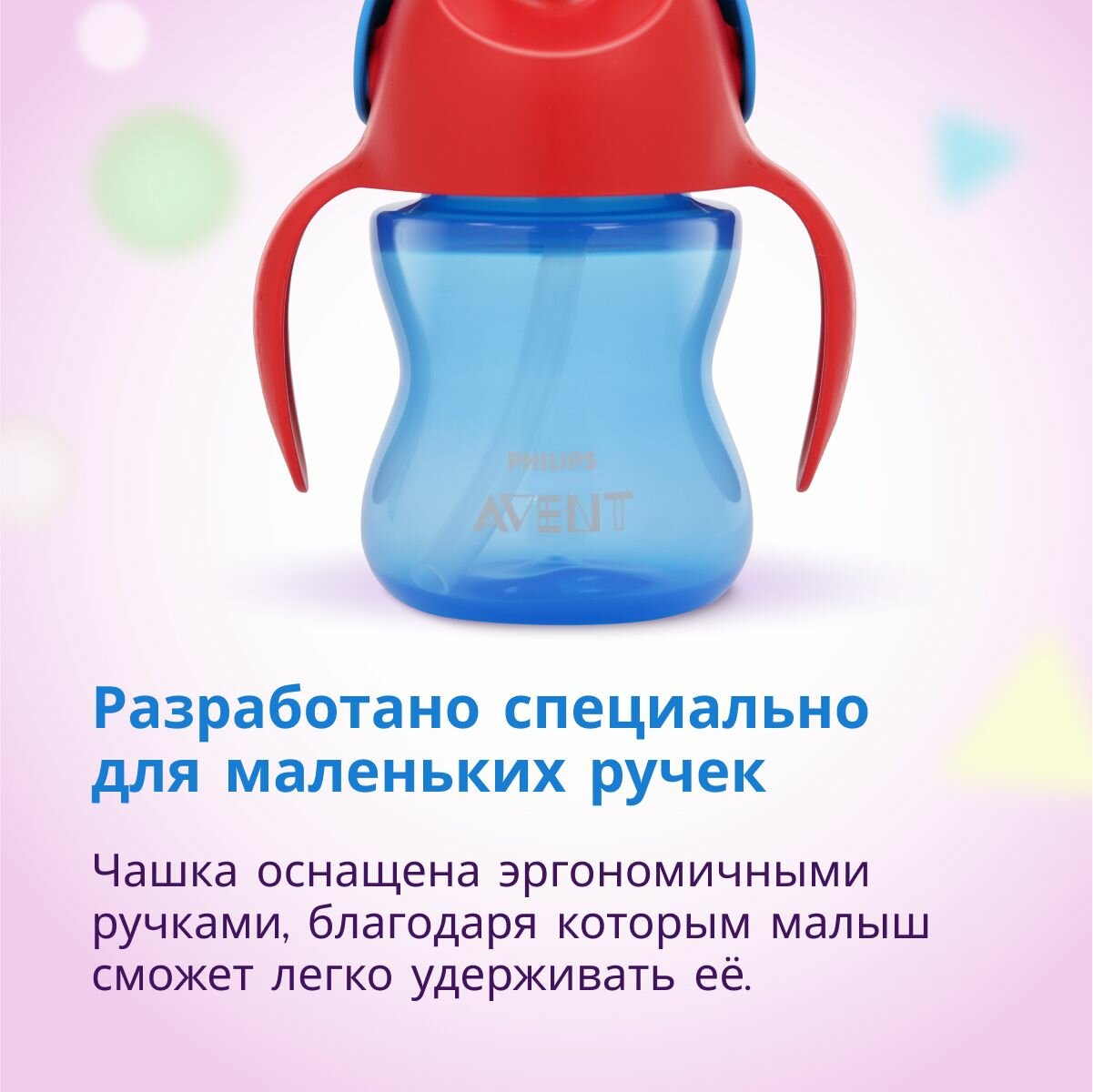 Детский поильник с ручками и трубочкой Philips Avent SCF796/01 200 мл, с защитной крышкой, синий/красный