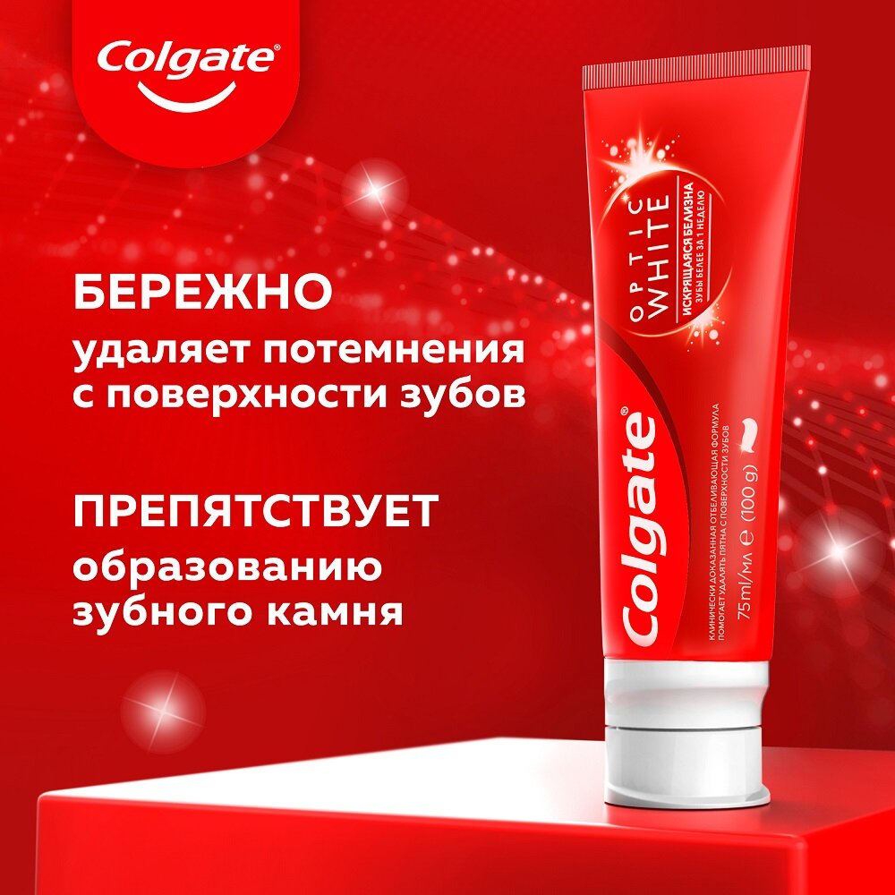 COLGATE Optic White Искрящаяся белизна отбеливающая зубная паста, 75 мл