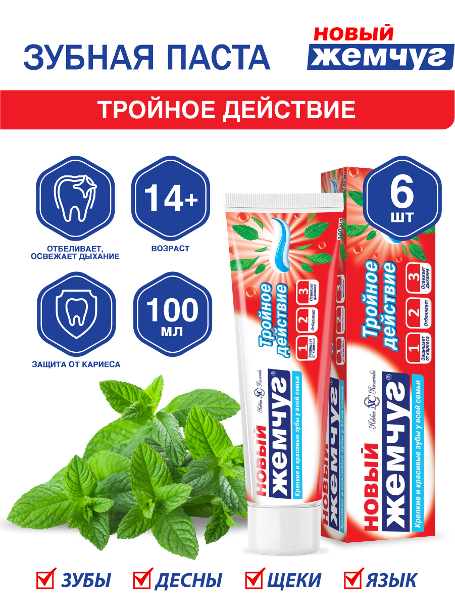 Купить Зубная паста Новый Жемчуг Тройное действие 100 мл. х 6 шт.