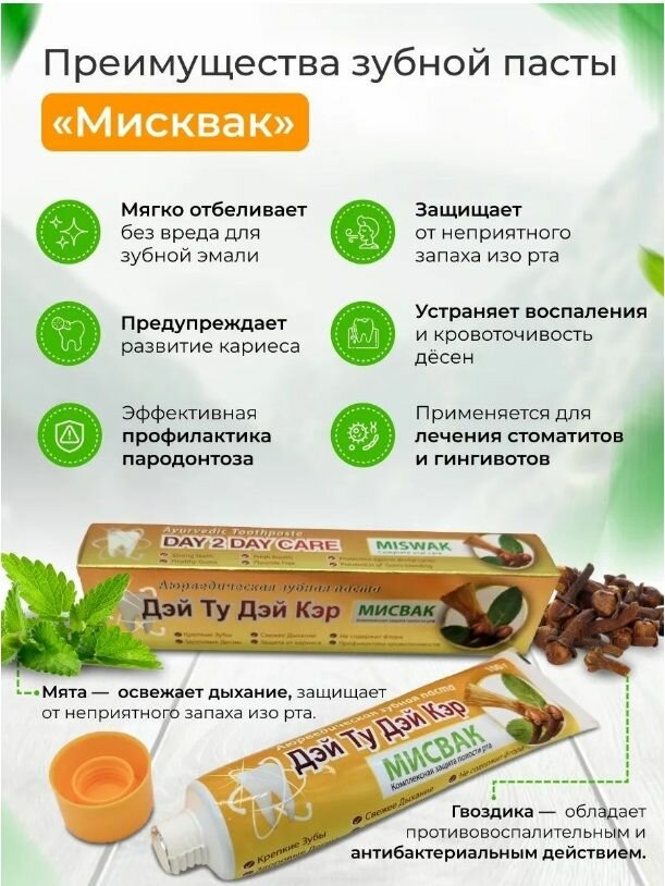 Аюрведическая зубная паста мисвак 2 шт - 100 гр Day 2 Day Care / MISWAK (Мишвак Дэй ту Дэй Кэр)